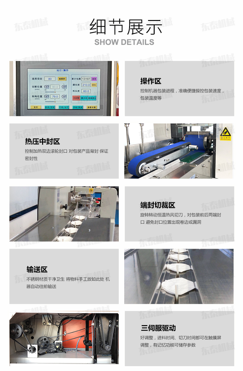 口罩包裝機(jī)可用于餅干、月餅、蛋黃派、米餅、雪糕、方便面、巧克力等塊狀產(chǎn)品的包裝,特別適合于小批量單一產(chǎn)品的包裝。