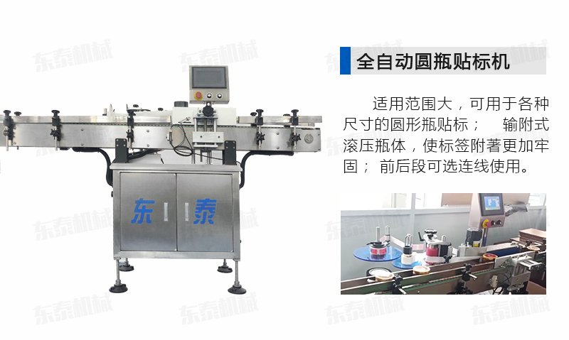 全機采用的技術(shù):微電腦-PLC-電子光纖傳感器控制系統(tǒng),使整機運行穩(wěn)定、高速; 操作系統(tǒng)采用操作界面控制,操作簡便、實用、效率高,并有產(chǎn)量記數(shù)功能; 技術(shù)的速度快且穩(wěn)定; 適用范圍大,可用于各種尺寸的圓形瓶貼標; 輸附式滾壓瓶體,使標簽附著更加牢固; 前后段可選連線使用。