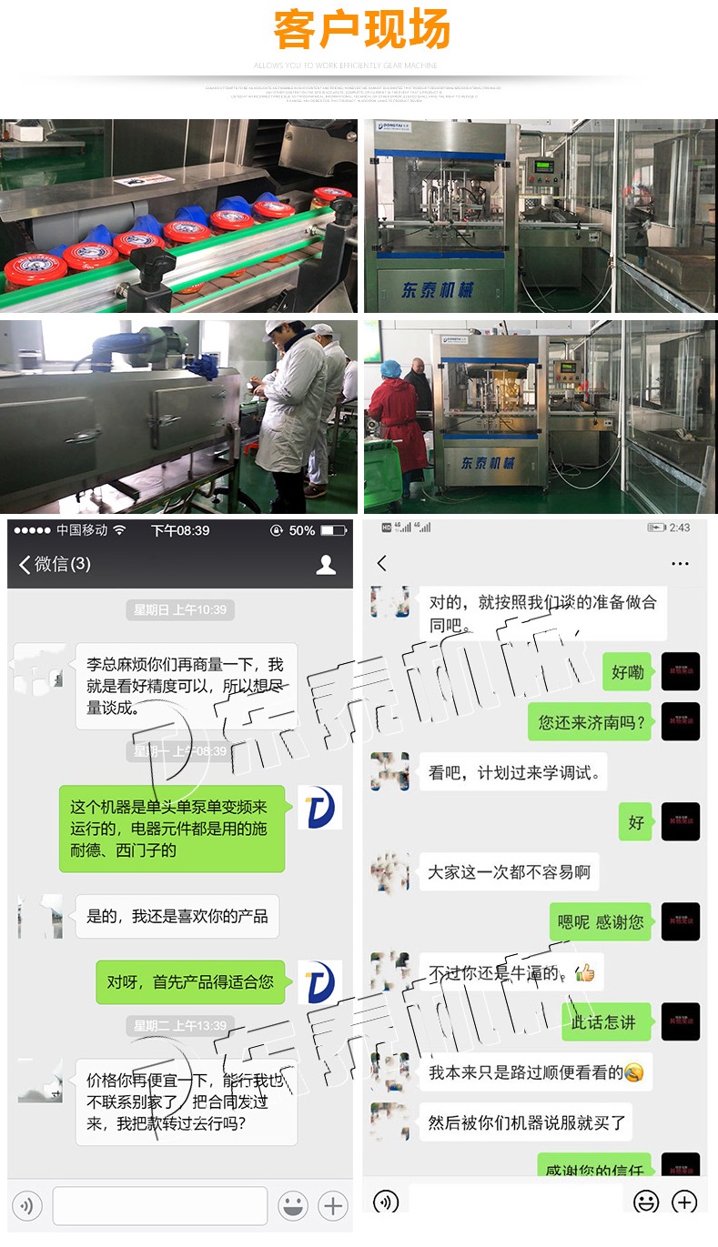設(shè)備簡(jiǎn)介 該生產(chǎn)線適合中小口徑三旋、四旋玻璃瓶調(diào)味醬的分裝,適合醬料、含顆粒黏稠物料的灌裝,物料接觸部分均采用316不銹鋼,整機(jī)304不銹鋼,符合食品衛(wèi)生標(biāo)準(zhǔn)。該機(jī)設(shè)計(jì)合理,機(jī)型小巧,立式結(jié)構(gòu),節(jié)省